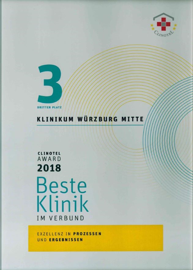 Das Klinikum Würzburg Mitte (KWM) hat im Klinikvergleich des CLINOTEL-Krankenhaus-Verbunds einen 3. Spitzenplatz im Vergleich der Mitglieds-Krankenhäuser erreicht. Damit gehört das KWM zu den Top-Kliniken des CLINOTEL-Verbunds in Deutschland.