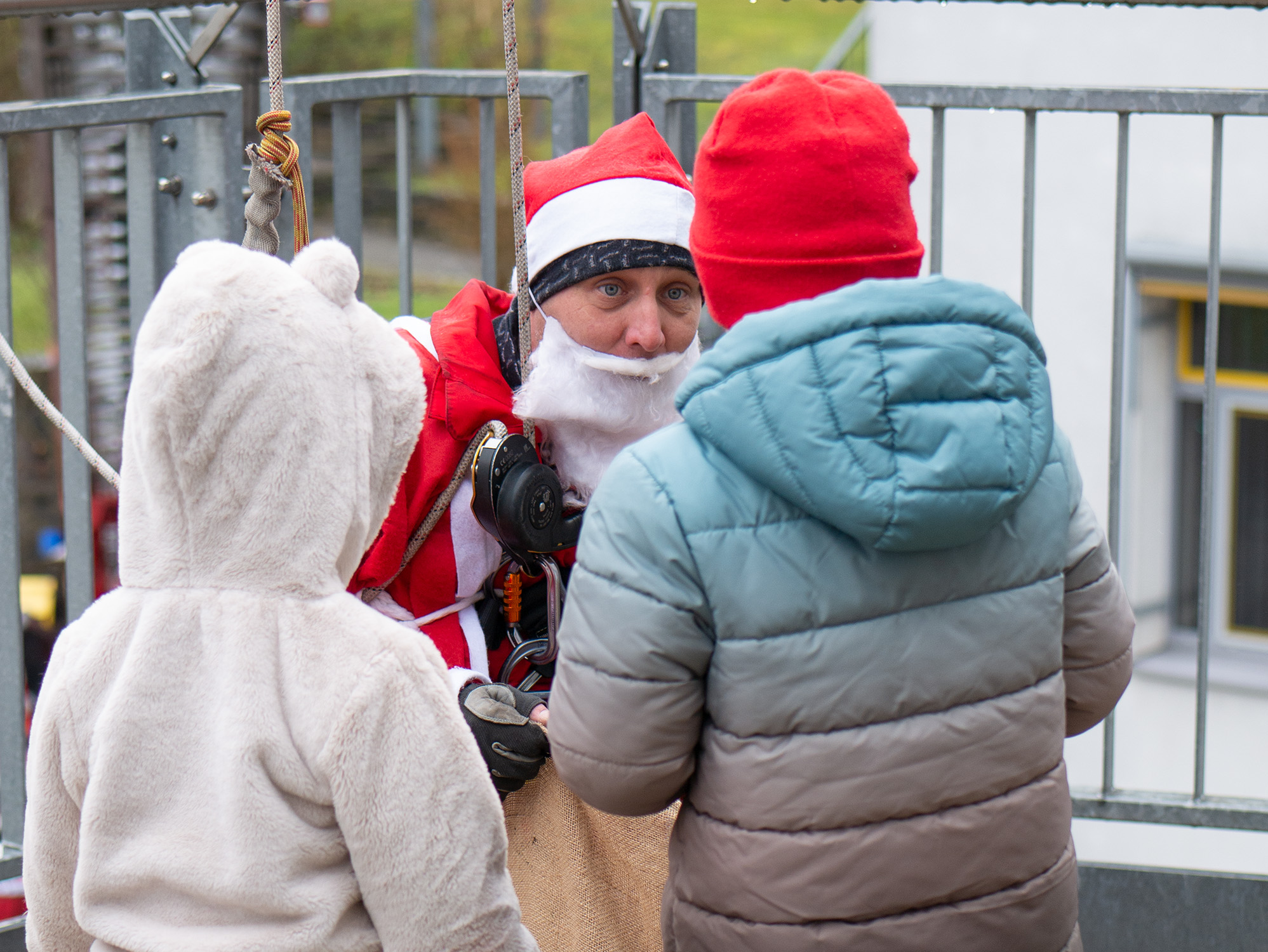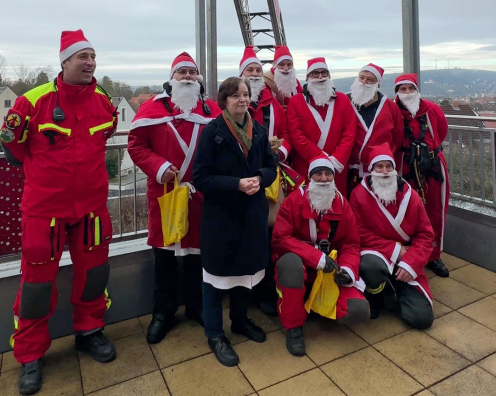 Am heutigen Nikolaustag haben die Feuerwehrmänner der Berufsfeuerwehr Würzburg den Patientinnen und Patienten der Missio Kinderklinik ein außergewöhnliches Erlebnis beschert. In einer spektakulären Aktion seilten sich die Höhenretter der Feuerwehr als Nikoläuse verkleidet vom Dach der Klinik ab und verteilten Geschenke an alle Kinder und Jugendlichen, die den Nikolaustag im Krankenhaus verbringen müssen.