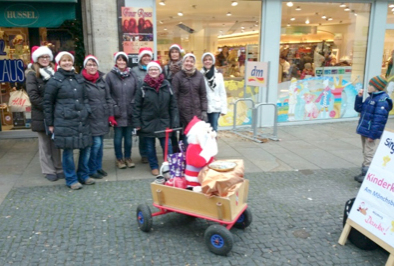 Am zweiten Aventssamstag waren wir wieder singend in der Fußgängerzone in Schweinfurt unterwegs. Das erste Mal mit medialer Unterstützung: Radio Gong berichtete über uns und kurz vor der ersten Station wurden wir noch live von Radio Primaton interviewt, die freundlicher Weise ebenfalls auf unsere Aktion aufmerksam machten. Von 13 bis 16 Uhr wanderten wir langsam von der Galeria Kaufhof bis zur Ecke Lange Zehntstraße/Kesslergasse, wobei wir an vier verschiedenen Stationen sangen und zusätzlich mit roten Zipfelmützen und einem Plüschnikolaus auf uns aufmerksam machten. Es machte uns wieder sehr viel Spaß und die Weihnachtsstimmung kletterte gewaltig auf der Gefühlsskala. Jetzt wussten wir was im Jahr zuvor gefehlt hatte, da wir einmal aussetzen mussten. Noch glücklicher waren wir nach dem Kassensturz am Abend: 423,17 € waren in unserem Nikolaussäckchen!