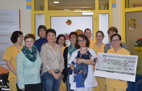 Denn nicht nur die Spende brachten wir mit, auch das Frühchen, das mittlerweile kaum noch erahnen lässt wie viele Menschen um sein Leben gekämpft haben, war dabei und wurde von den Schwestern und Frau Dr. Friedewald herzlich empfangen.