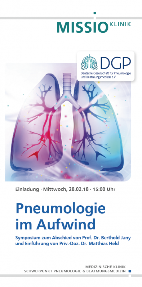 Zum heutigen Wechsel in der ärztlichen Leitung der Inneren Medizin/Pneumologie am Standort Missioklinik laden wir Sie herzlich zu einem Symposium ein, das den Anspruch auf wissenschaftliche Fundierung unseres ärztlichen Handelns unterstreichen soll. Herausragende Vertreter der Pneumologie in Deutschland und Europa werden zu den wichtigsten Themen der aktuellen Pneumologie referieren. Wir können auch einen kompetenten und wegweisenden Ausblick in die künftigen Entwicklungen des Fachs erwarten.